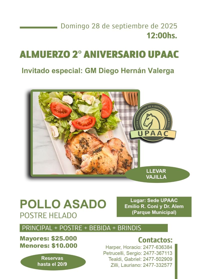 La ciudad de Pergamino se prepara para recibir al Gran Maestro Internacional de Ajedrez Diego Valerga, en el marco de las celebraciones por el segundo aniversario de la Unión Pergaminense de Ajedrez Asociación Civil (UPAAC). La visita se llevará a cabo el sábado y el domingo próximo, con propuestas para toda la comunidad ajedrecística y el público en general.