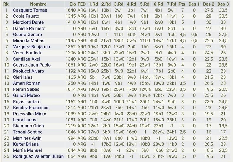 El ajedrecista pergaminense Tomás Casquero, de 8 años, continúa confirmando su talento en el tablero y sumando logros destacados, en este caso a nivel provincial. El domingo, el jugador del Club Social Pergamino se quedó con el primer puesto en la sexta fecha del Prix del Centro de la Provincia de Buenos Aires, disputada en Saladillo, en el marco del Torneo “162º Aniversario de Saladillo - Ferruccio Zanovello”.
