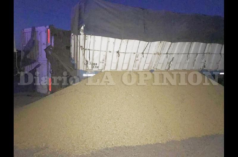 En las primeras horas de esta mañana, por causa que son materia de investigación, un camión Mercedes Benz, con acoplado Montenegro, que transportaba soja, volcó en el cruce de las ruta provincial 50 y la ruta nacional 8.