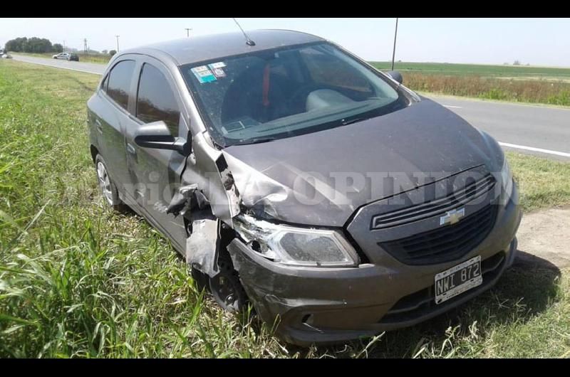 Esta mañana se produjo un accidente en el kilómetro 106 de la ruta Nº 32 que une Pergamino con Salto en el que estuvieron involucrados un automóvil Chevrolet Onix (NWI 872) conducido por Exequiel Acevedo (27 años de edad), de Arroyo Dulce, y una moto Mondial 150 cc patente (027 ESL) manejada por Carlos Osvaldo Castel (38 años de edad), de Rancagua.