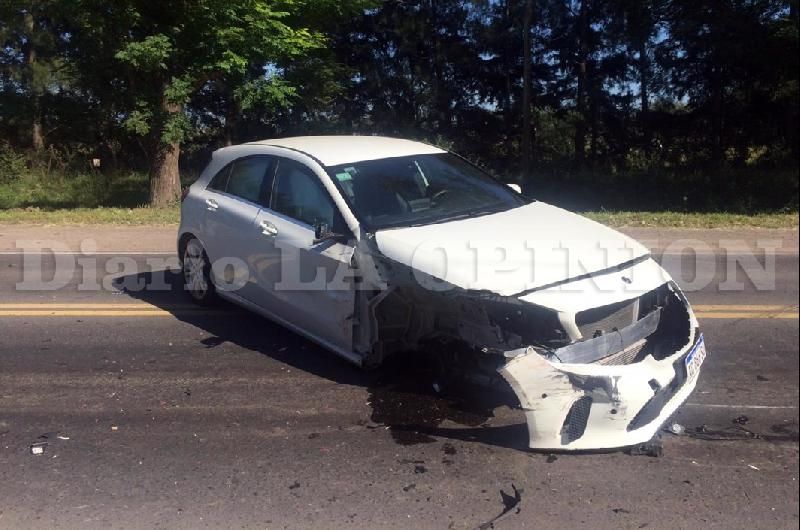 El vehículo Mercedes Benz blanco en el que se trasladaba Oscar Raúl Fangio de 84 años. (LA OPINION)