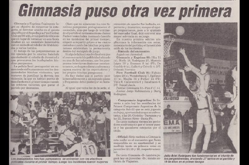 Este partido jugado hace 26 años, además de ser recordado por los amantes del deporte y especialmente del basquetbol por haber sido el último del mens sana en la Liga, quedó en la memoria colectiva de la ciudad por los incidentes que ocasionaron los hinchas visitantes antes, durante y sobre todo después del encuentro con un saldo de 74 detenidos. Al día siguiente LA OPINION tituló “Gimnasia puso otra vez primera” y las repercusiones del triunfo y también de los incidentes tuvieron una amplia cobertura en la edición del viernes 10 de junio cuando tituló: “¿El ‘Lobo’ está ahí!”.