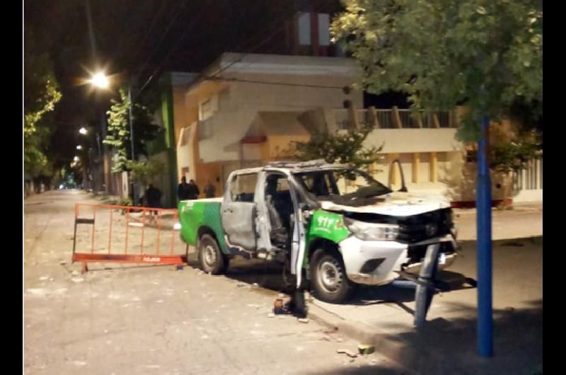 En el marco de la protesta, una camioneta policial Toyota Hilux que estaba estacionada frente al Colegio Domingo Faustino Sarmiento y un centro vacunatorio, fue incendiada y empujada contra el edificio policial. También hubo marchas y protestas frente a los domicilios de dos fiscales y de un juez de paz.