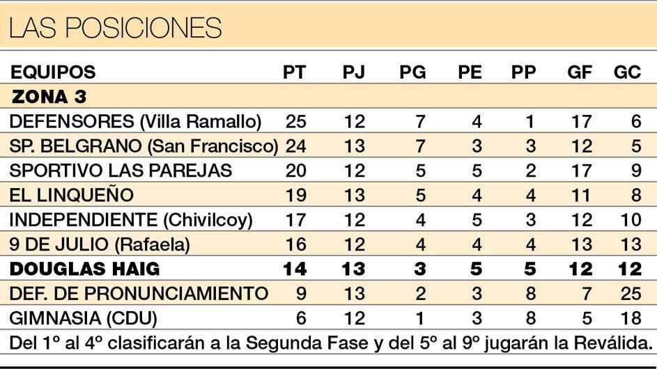 ¿Será una misión posible? Todos los que conforman este Douglas Haig, desde la dirigencia hasta los hinchas, aguardan que se pueda enderezar el rumbo y en caso de no finalizar entre los cuatro primeros de esta Primera Fase, al menos ser protagonista en la Reválida, a través de la cual se puede llegar a un partido promocional con un club de la Primera B Metropolitana por un ascenso a la Primera Nacional.