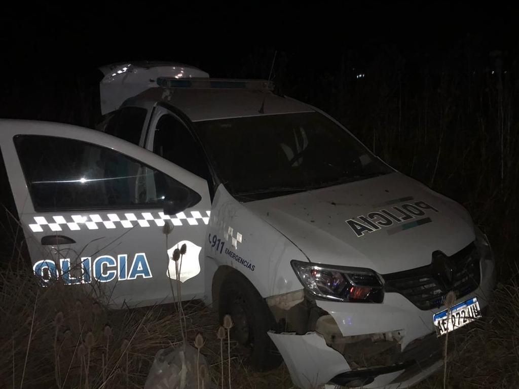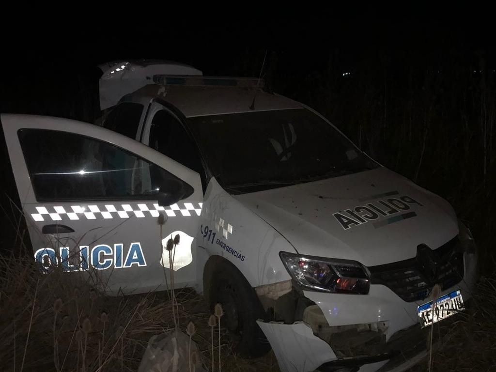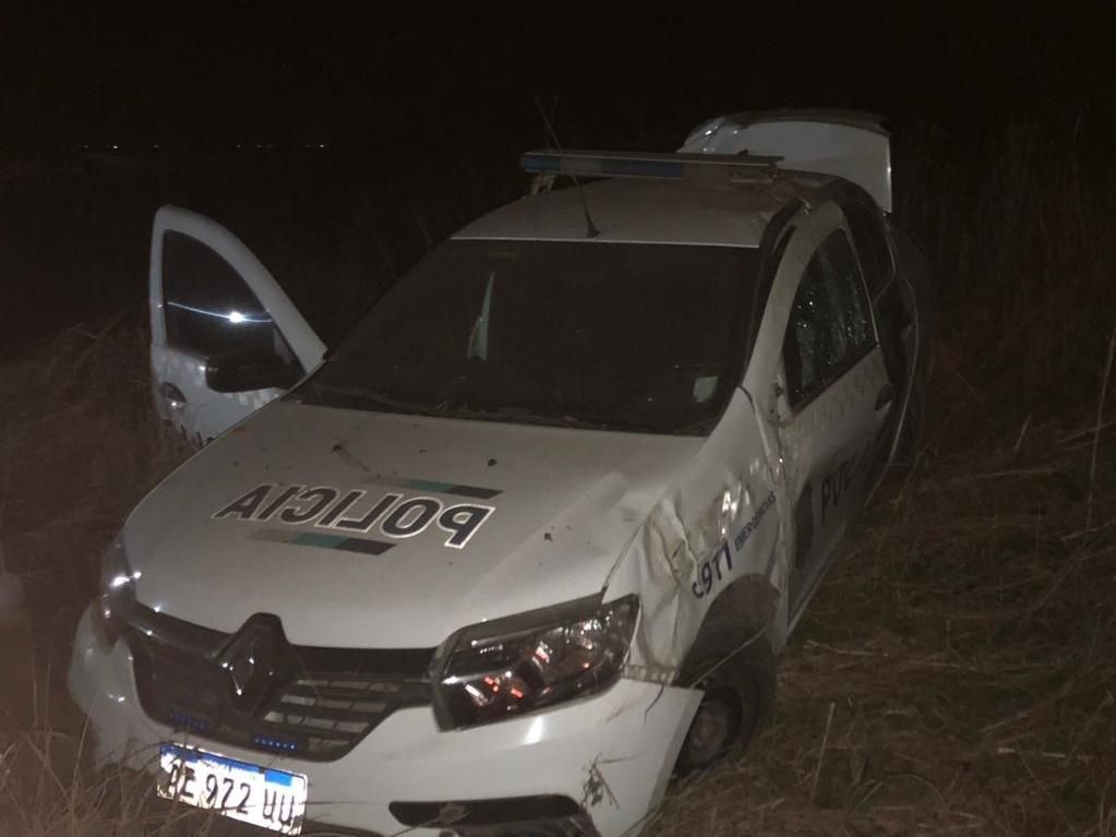 En la tarde noche del viernes en el acceso a Mariano H. Alfonzo despistó y volcó un patrullero por causas que son materia de investigación.