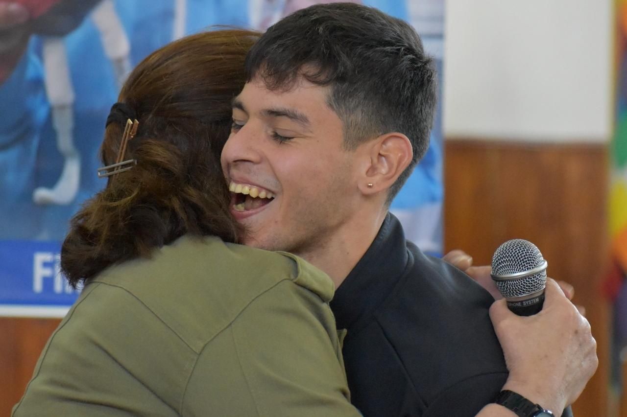 La sonrisa de Alexis visibilizó la alegría por ser reconocidos por los docentes y los compañeros de estudios.