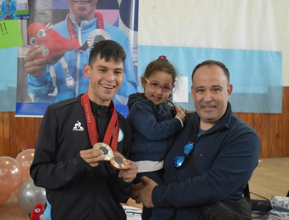 Las autoridades educativas prepararon el salón con una gigantografía de Alexis con las medallas de plata y bronce obtenidas en los Juegos Paralímpicos de Paris 2024.