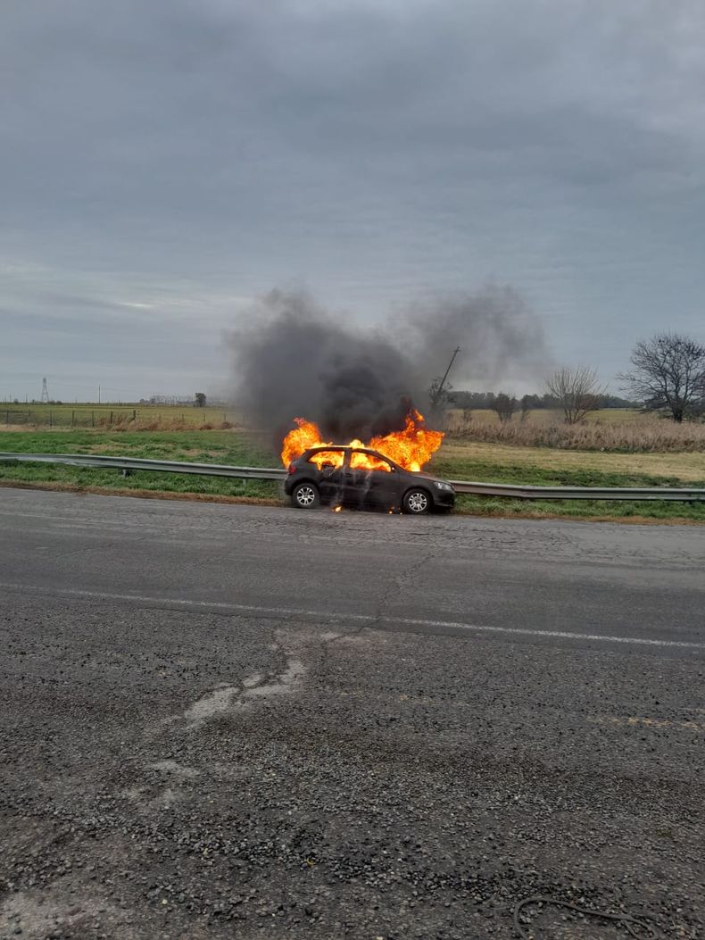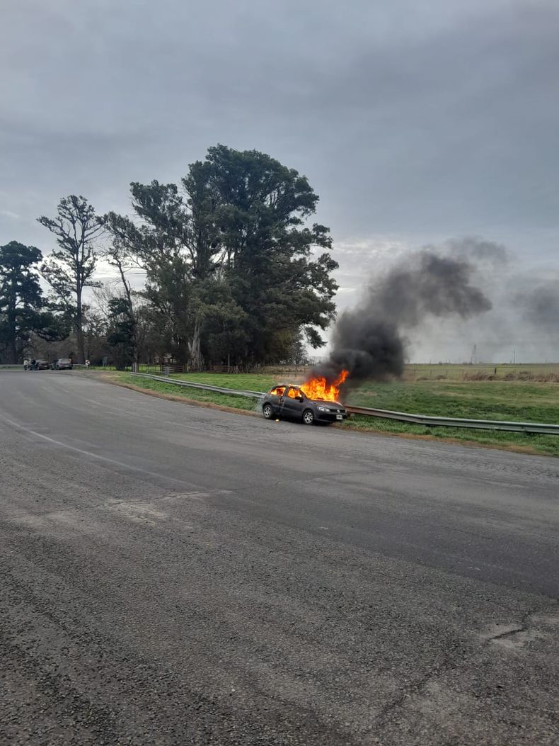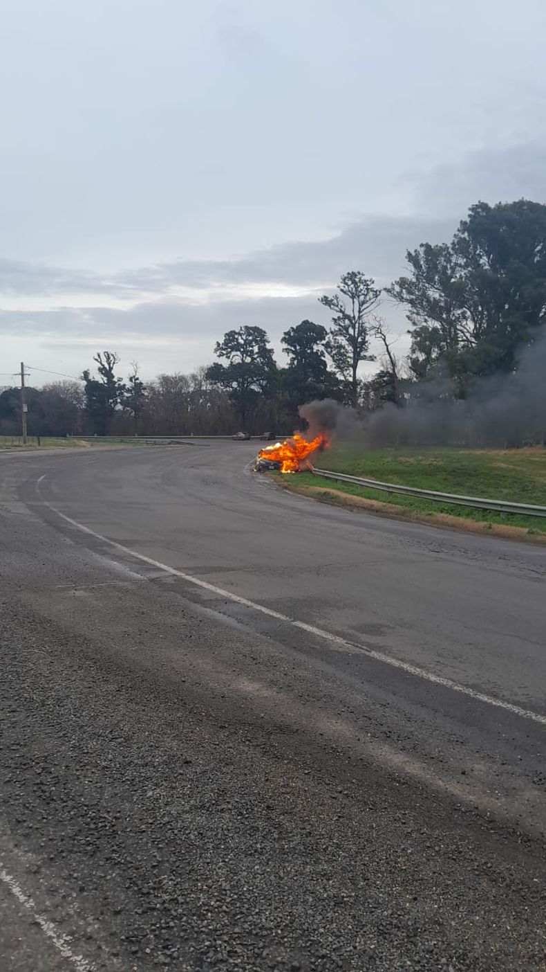 En la tarde de este domingo en la serie de curvas de la ruta nacional 188, anterior al arribo a la zona urbana de Acevedo, se produjo el voraz incendio de un automóvil Volkswagen Gol que se desplazaba en viaje por esa traza y por un posible desperfecto eléctrico mecánico empezó a arder en llamas en la parte del motor.